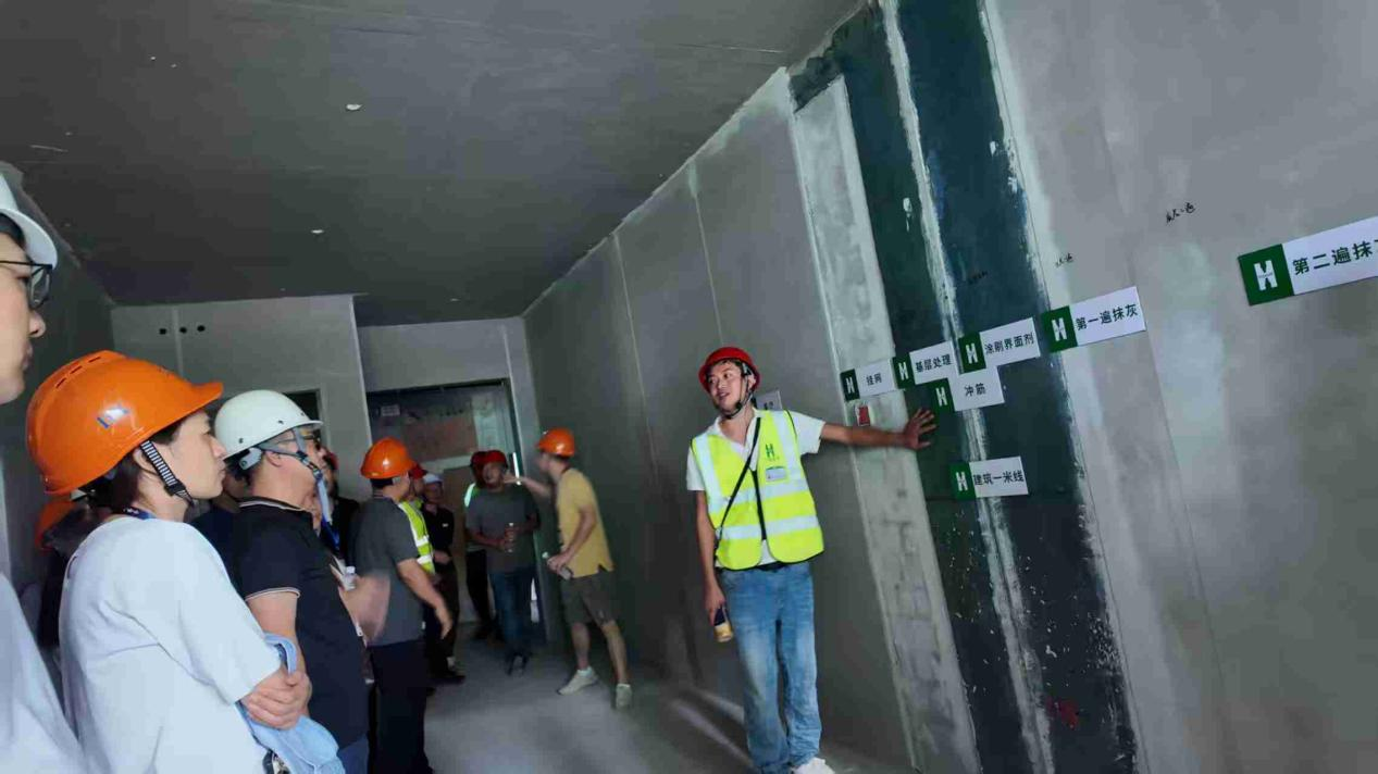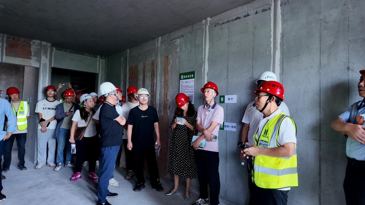本次观摩会以“树立标杆、推广经验、规范行业”为主题,将达州基地城市有机更新项目作为区域质量标杆,系统梳理其可复制、可推广的优秀管理与施工经验,为全区建设行业提供了清晰的质量参考。在活动现场,观摩团队深入项目样板区与施工楼层,开启了一场“沉浸式”质量之旅,项目技术团队结合实际场景详细讲解质量控制要点,并针对“铝模板保护”“墙板接缝”“ALC隔墙”等常见施工难点与质量痛点进行了现场解答。
