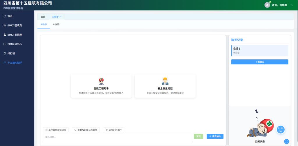 在全球AI技术浪潮与行业数字化迭代进程中,建筑行业正加速向智能建造转型。四川十五建紧跟趋势,践行集团“2333”转型战略,全力推动企业与智能产业融合发展。四川十五建BIM中心自主研发集AI、BIM技术与施工管理于一体的数字化管理平台,为企业高质量发展注入数字动能,开创智能建造新范式。